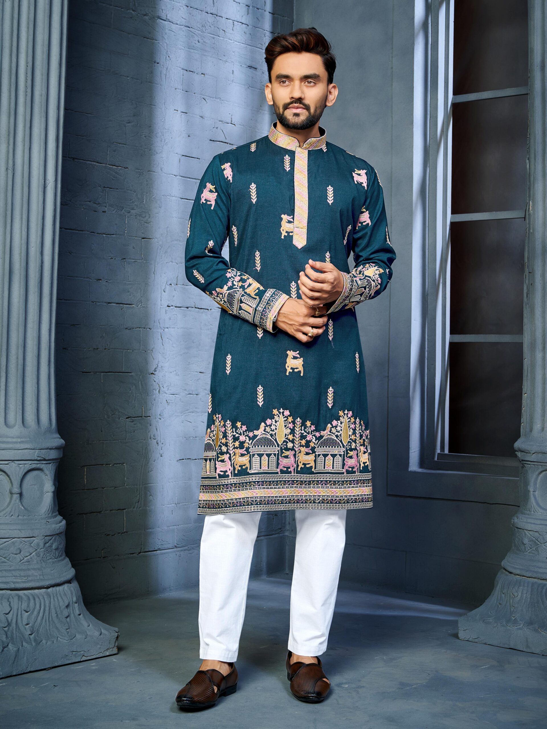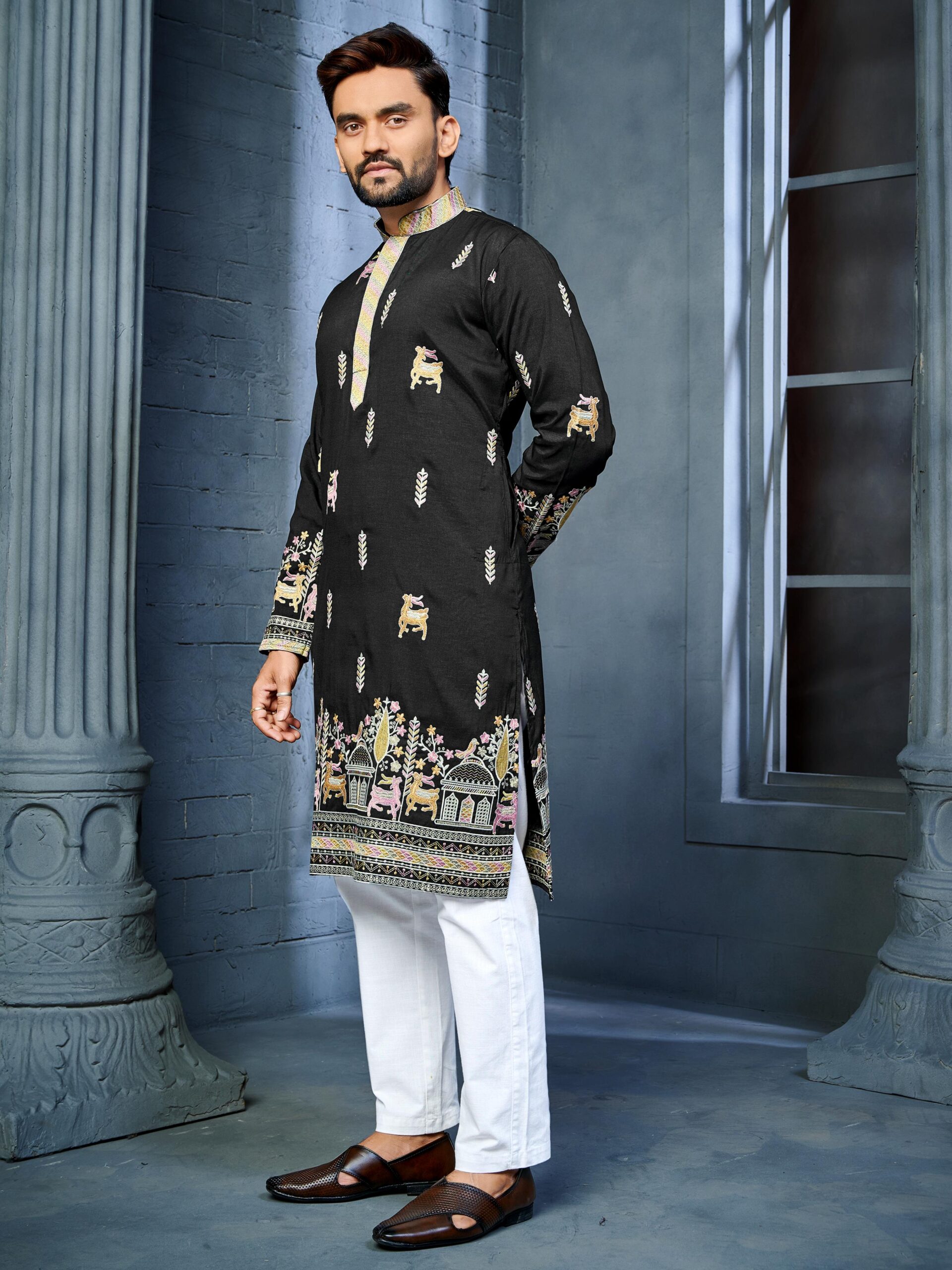 KURTA DETAIL : MULTI THREAD EMBROIDERY DEER PATTERN DAAMAN CONCEPT KURTA❤️🔥