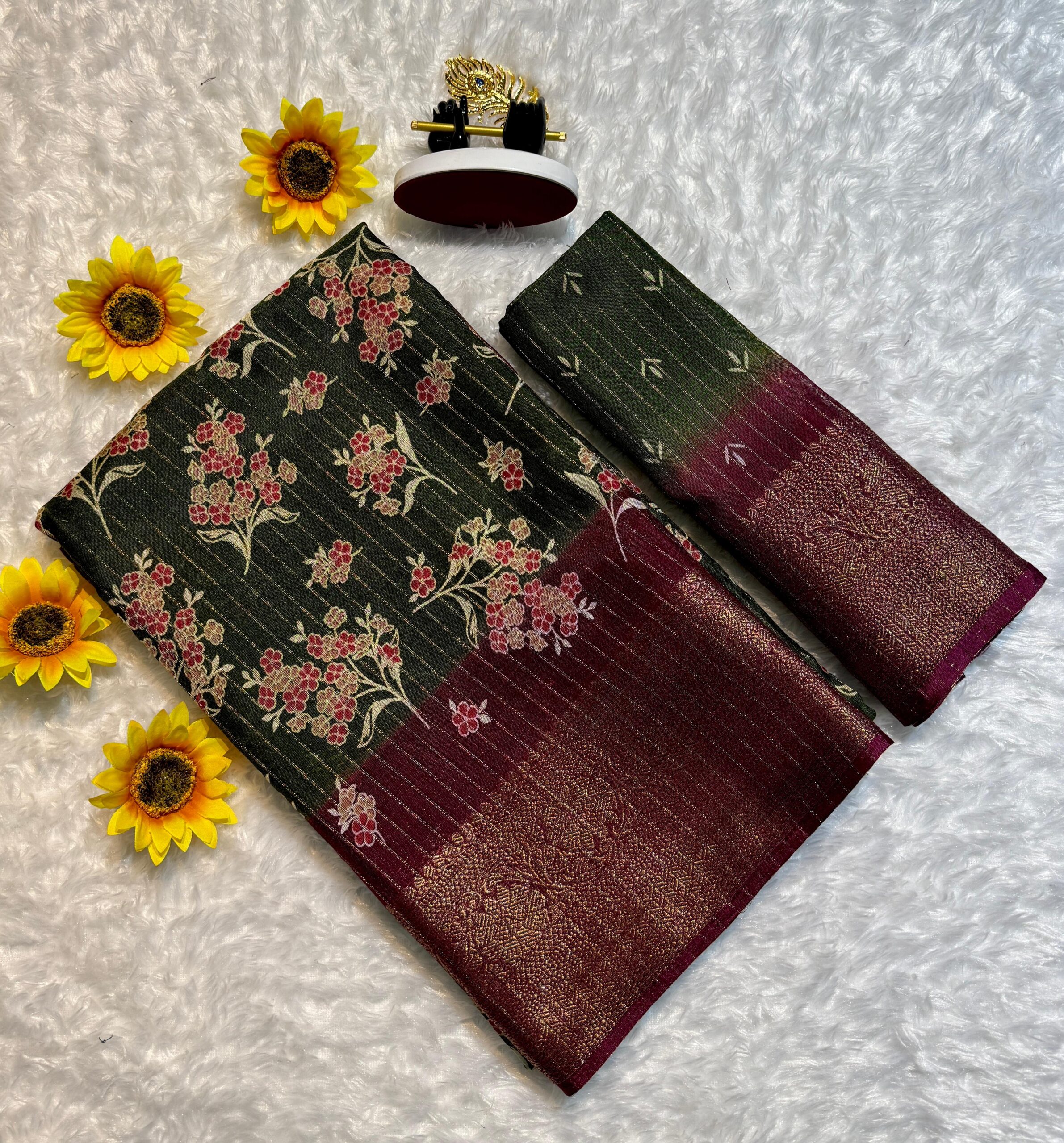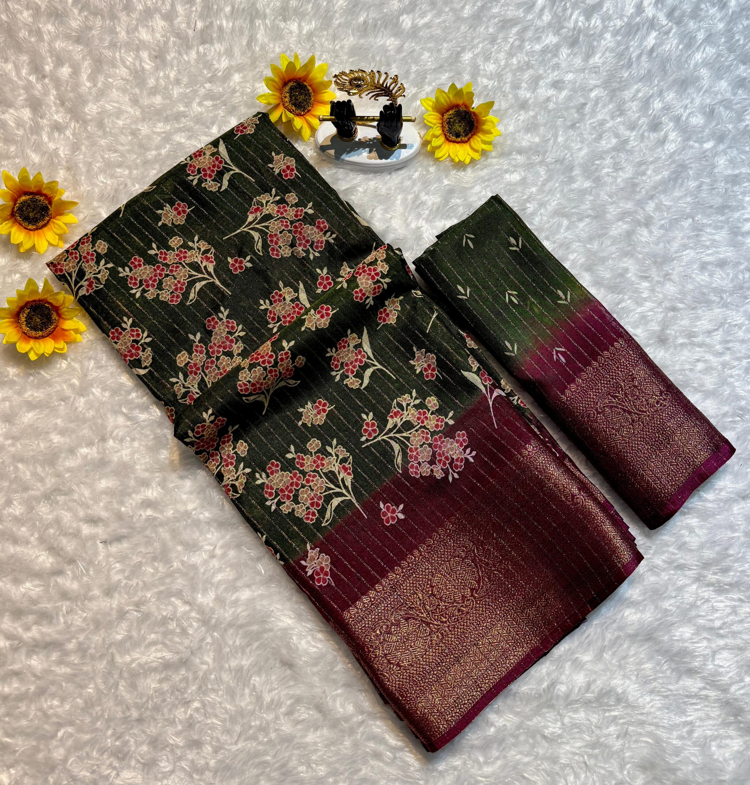 Semi Dola Saree… riko zari all over… Floral butti on it…